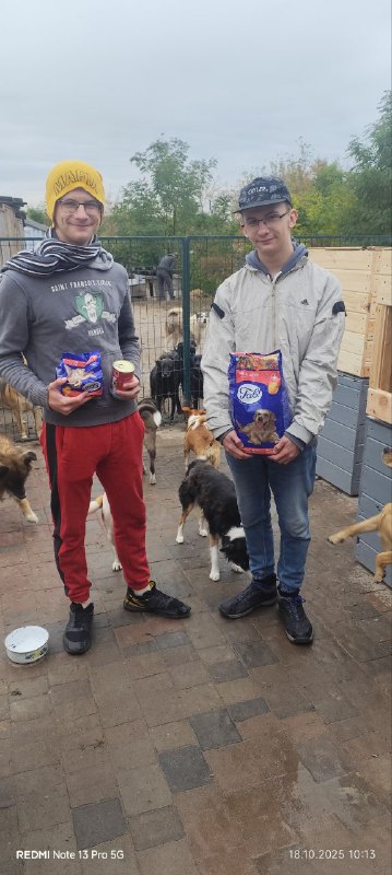 Під час візиту вони допомогли працівникам у вигулі собак та передали на центр увесь зібраний корм.